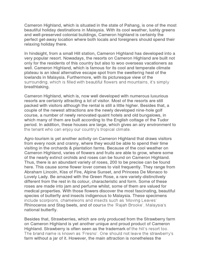 English Essay Trip To Cameron Highland Pdf