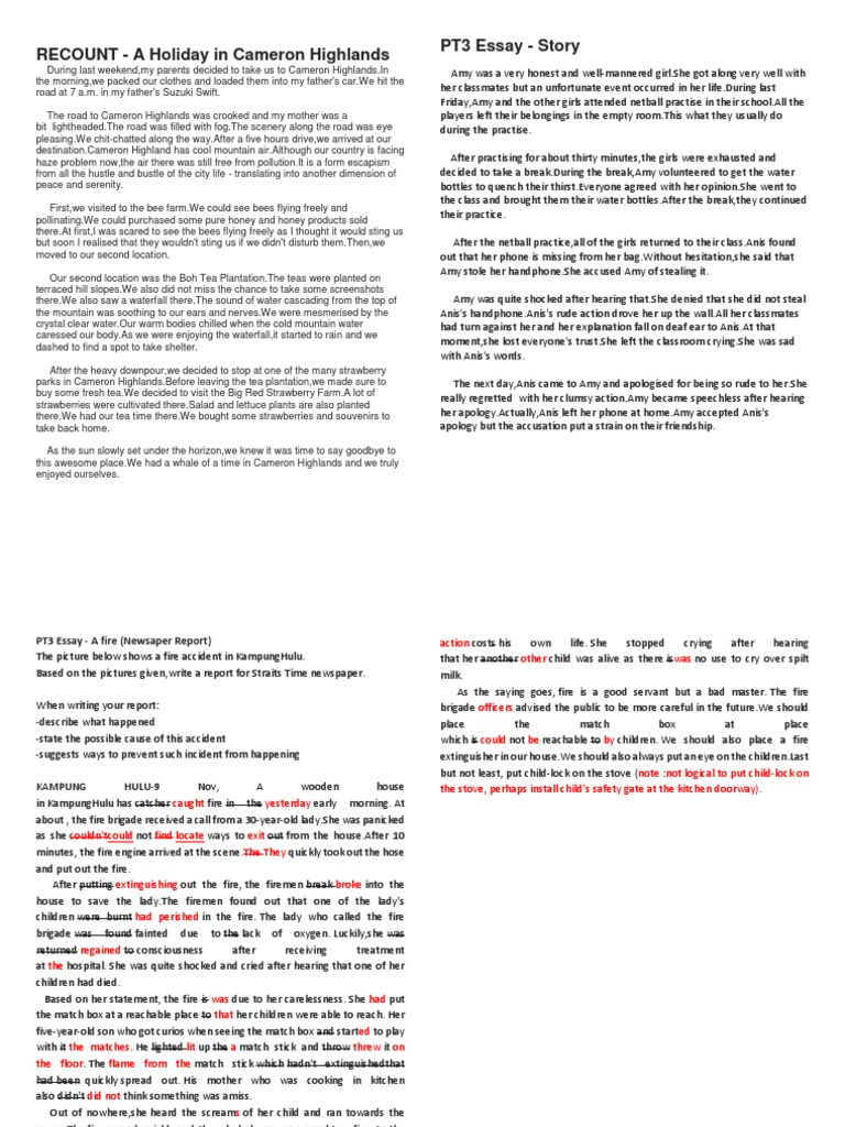 English Essays 1 Example Essay A Holiday In Cameron Highlands During Last Weekend My Parents Studeersnel